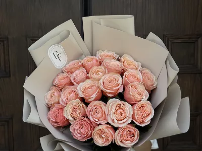 Composed of 24 roses in various shades, this bouquet exudes harmony and sophistication. White, pink, peach and beige shades create a delicate but memorable contrast, making this composition a universal gift for any occasion. This elegant bouquet will become a wonderful gesture of attention, emphasizing sincere emotions and care.