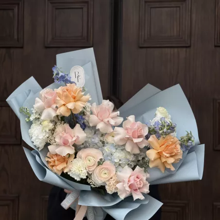 The main thing is to choose a floral composition based not only on the recipient's preferences but also based on the colors and flowers she loves. In our online store, you can also personalize the bouquet by adding a cute card with warm, kind wishes. Write the message you would like to include on the card, and we will transfer it onto the paper on your behalf.