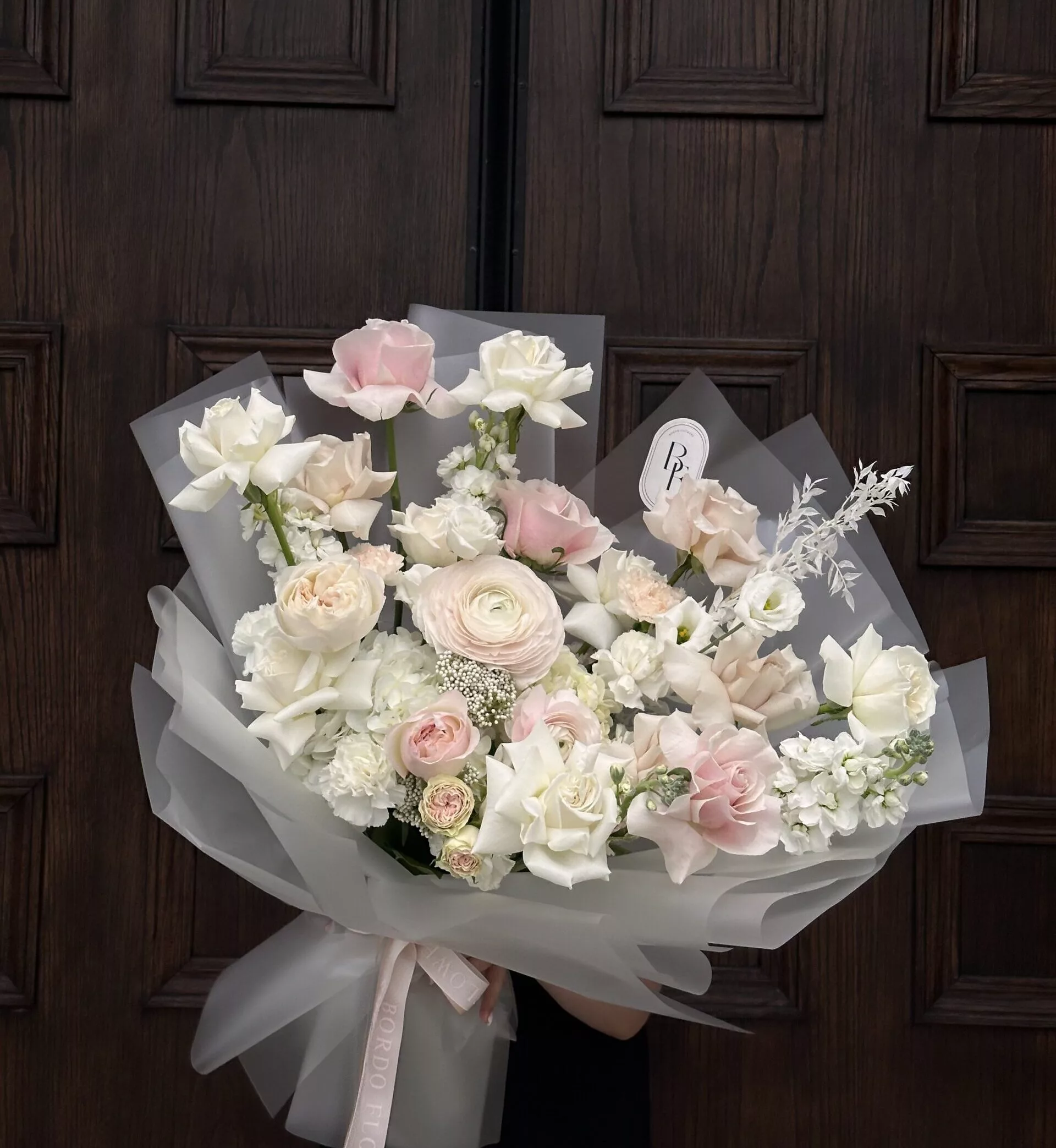 We deliver our bouquets in temporary aqua boxes, ensuring they stay fresh during transportation.