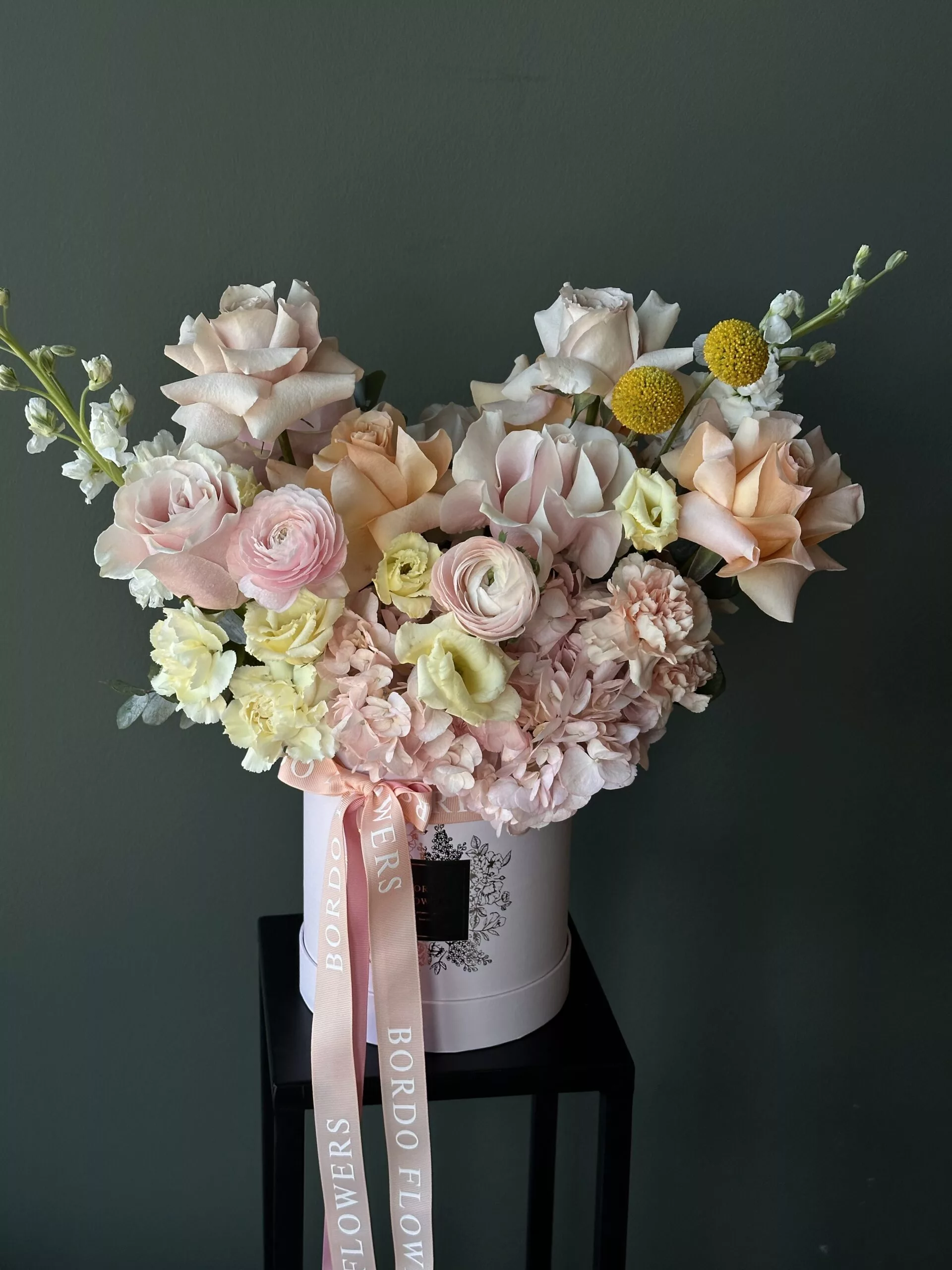- Color bouquet: pink box.