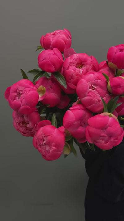 “Peony” bouquet — round shape bouquet with seasonal peonies in white , pink or coral colors. Our manager will contact you to confirm the design before delivery.