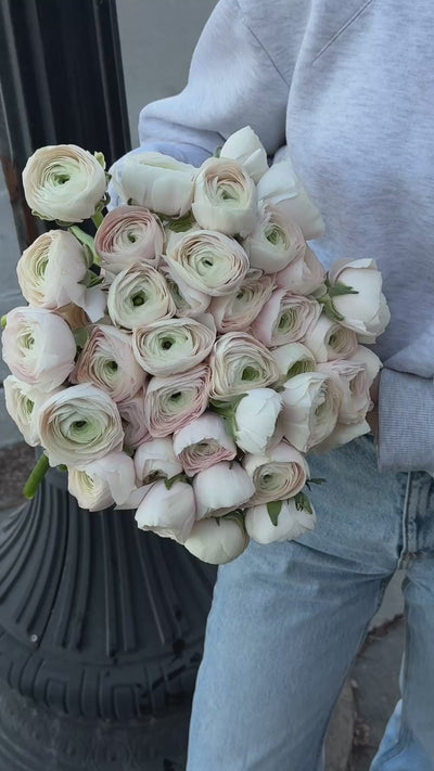 “Soft Muse” Ranunculuses bouquet — a beautifully rounded arrangement featuring delicate ranunculuses, available in 5, 10, 15, or 20 stems. Designed in a soft, romantic style, this bouquet highlights the natural elegance and layered beauty of each bloom for a refined and graceful look.
